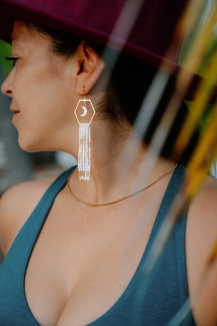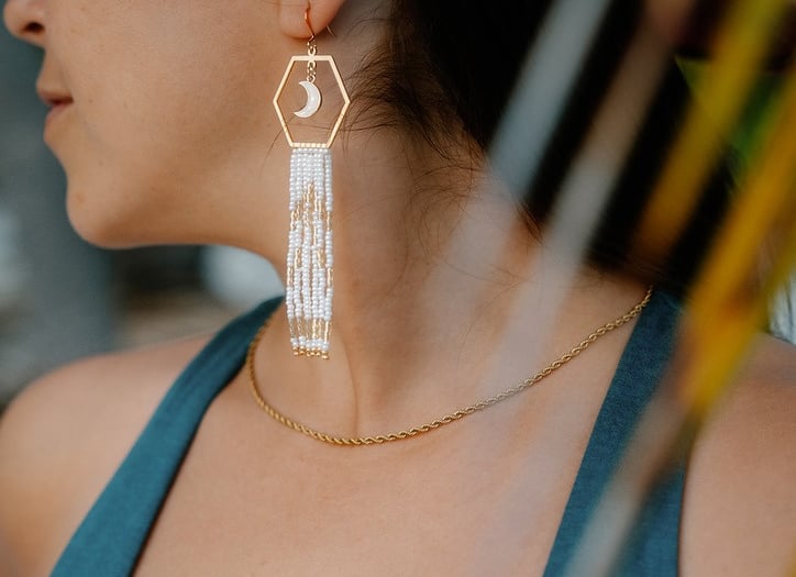 Inspired by both my Northern New Mexico roots and life in the islands, my designs reflect a balance of earthy tones and vibrant tropical color. Each piece is carefully made by hand, resulting in intricate, wearable art that is as unique as the environment that inspires it.